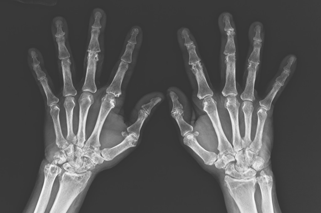 P先生的雙手關節已留下多處侵蝕的證據。